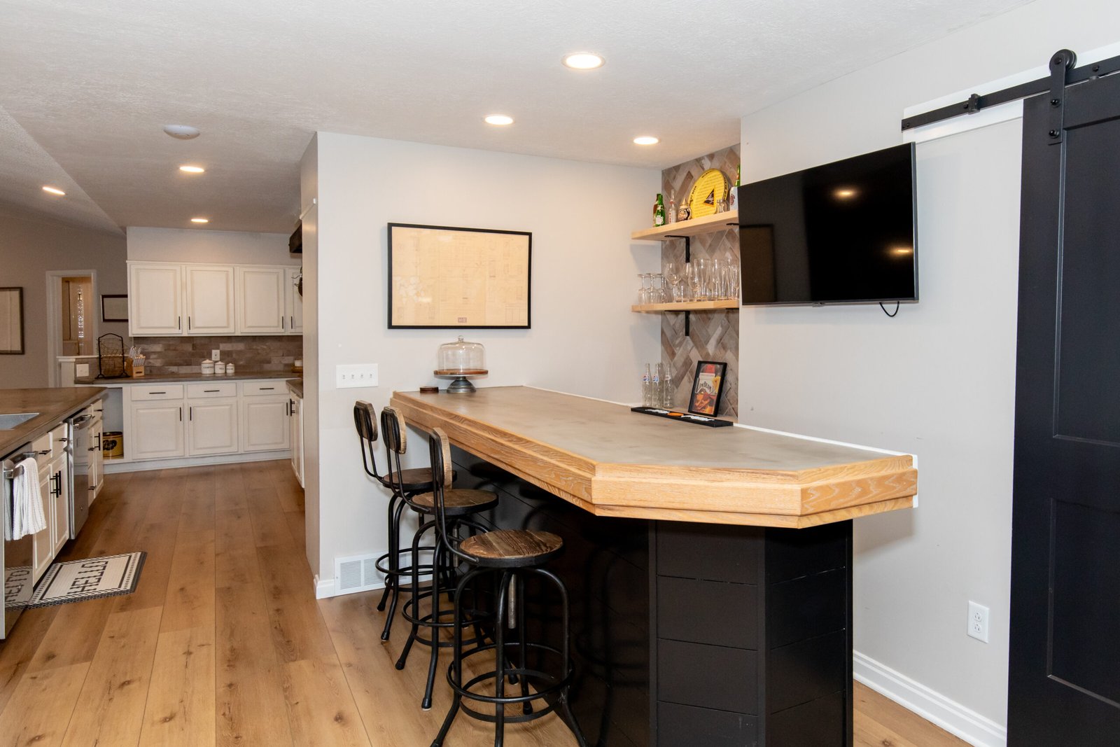 Upon entry to the Attic, we have a 500 square foot arcade loaded with vintage arcade games, basketball shootout, shuffleboard and a large 75″ Television decked out with decor from the Cavaliers 2016 NBA Championship